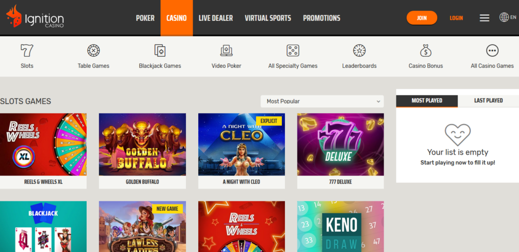 The game collection of Ignition Casino
